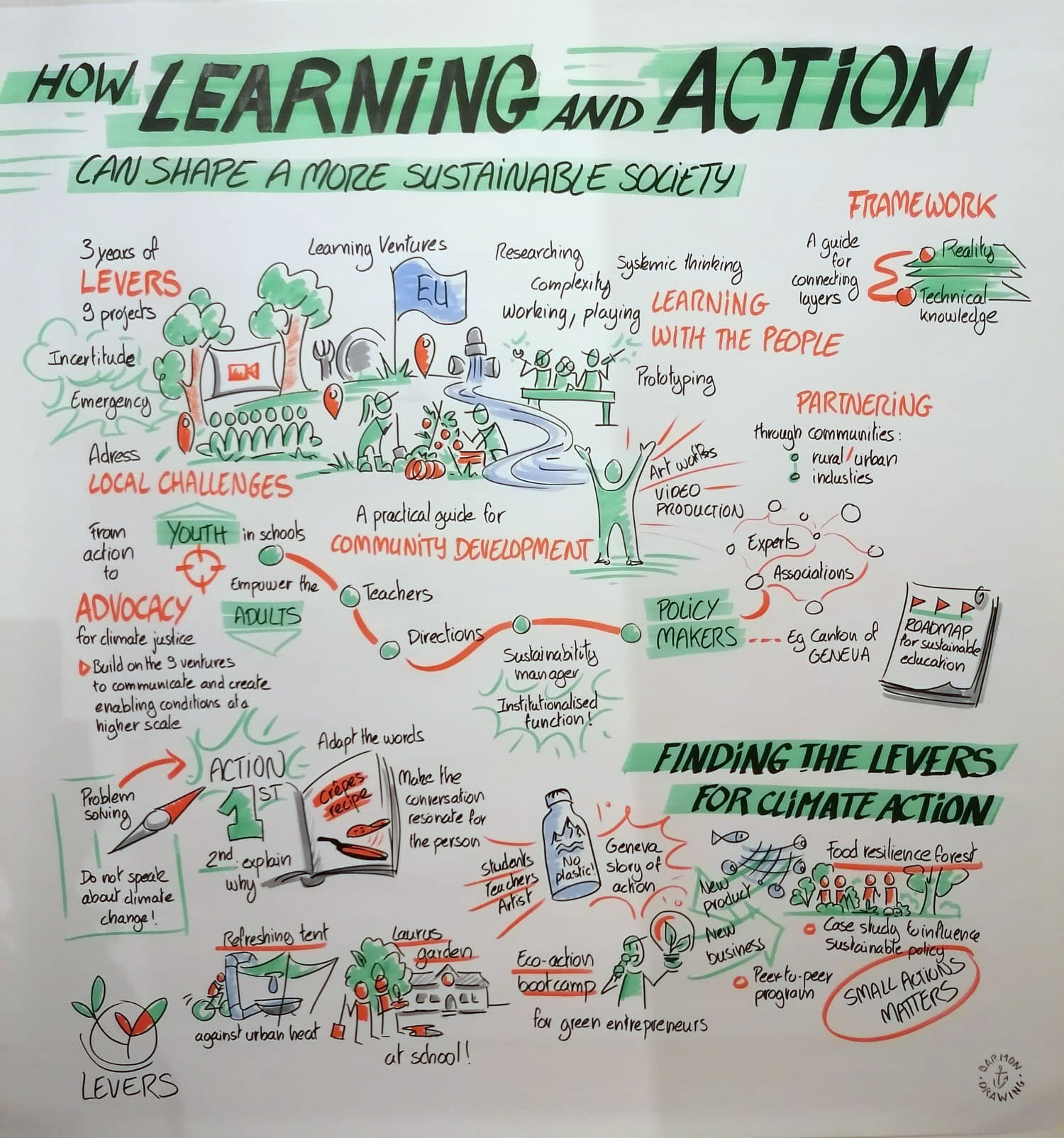 A public symposium “How learning and action can shape a more sustainable society” brought together around 30-40 participants, including members of the LEVERS consortium. The symposium showcased key project findings and featured a lecture “From Action to Beliefs. Some golden nuggets from neuroscience to foster a constructive climate change debate” by neuroscientist Dr. Kris De Meyer, who discussed insights from neuroscience relevant to fostering constructive debate on climate change.