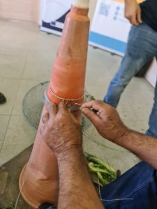 Skarka uses a woven or wire basket, baited with specific leaves and placed near underwater vegetation. After a few hours, it’s retrieved often with target species inside. Because it’s selective and gentle, it helps reduce bycatch and limits harm to turtles and dolphins; one reason participants were keen to revisit and adapt it. The skarka is also very hard to damage in comparison to fishing nets, and so reduces a lot of waste in the making, harms less life and is cheaper for the fisherman. Lastly, the skarka method goes back hundreds of years and requires special skills to build. Only a few people on the island still have this knowledge and the skills to make this basket and it is therefore crucial to uplift this tradition, safeguarding our culture, the fish, the environment and the fishers.