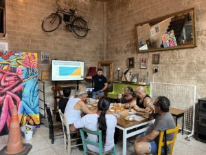 In Cyprus, marine capture fisheries generate roughly €7.4 million which means approximately 0.3% of our GDP; a very small percentage. This may explain the recent neglect the profession is facing from the governmental sectors. Another important part of the presentation was the showcase of sustainable fishery in different countries and regions, emphasizing that when used correctly, sustainable fishing methods do exist and offer positive results with a positive impact on our climate charge. The educational video on bycatch offered a step-by-step guidance on how to safely release such fish back into the sea, emphasizing the importance of minimizing injury not only for Angelsharks, the protagonist of the video, but for all marine life. This sparked a thoughtful conversation on the ethical and ecological responsibility fishermen carry when handling bycatch and how small, mindful actions can help protect vulnerable species and restore declining fish populations.